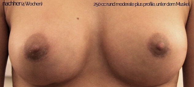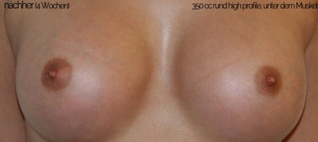Direkt im Anschluss an eine Brustvergrösserung in Zürich kann sich die Brust noch etwas fester anfühlen. Das liegt daran, dass die Brust noch etwas geschwollen ist und sich die Haut erstmal an das neu gewonnene Volumen anpassen muss. Nach einigen Wochen wird die Brust zunehmend weicher und die Brüste fühlen sich in der Regel nicht anders an als die natürliche Brust. Die Kundin selbst kann das Implantat natürlich fühlen, wenn sie das will.