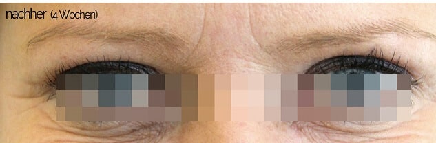 Direkt im Anschluss an die Oberlidstraffung ist ein erstes Resultat sichtbar. Das vollständige Behandlungsergebnis ist etwa eine Woche nach der Oberlidkorrektur möglich, wenn die Schwellungen und Rötungen abgeklungen sind.